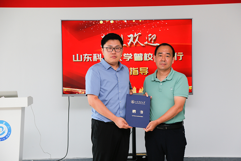 期間,學(xué)校與青島俊逸科技集團(tuán)有限公司簽署合作協(xié)議,并舉行了山東科技大學(xué)大學(xué)生就業(yè)創(chuàng)業(yè)實(shí)踐基地授牌儀式,曾慶田為王成剛頒發(fā)山東科技大學(xué)大學(xué)生就業(yè)創(chuàng)業(yè)導(dǎo)師聘書。