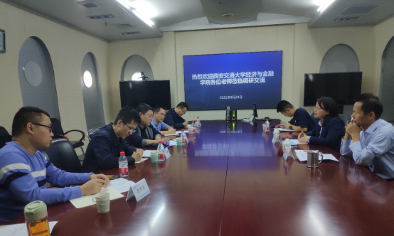 9月24日下午,經(jīng)金學(xué)院“金融支持科技自強(qiáng)自立戰(zhàn)略研究”課題組一行赴中航西飛民用飛機(jī)有限責(zé)任公司就有關(guān)科技型企業(yè)和商業(yè)銀行之間的信貸難題進(jìn)行調(diào)研。中航西飛民用飛機(jī)有限責(zé)任公司副總經(jīng)理陳杜燕、規(guī)劃經(jīng)營(yíng)部高級(jí)業(yè)務(wù)經(jīng)理呂少卿、財(cái)務(wù)管理部高級(jí)業(yè)務(wù)經(jīng)理?xiàng)钗挠畲砦黠w民機(jī)與課題組成員進(jìn)行座談。學(xué)院沈?yàn)淌?、侯曉輝教授、蔣仁愛(ài)教授、王樂(lè)副教授、馬貴元助理教授以及碩士代表參加調(diào)研活動(dòng)。