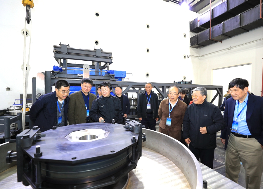 在評(píng)審驗(yàn)收工作中,專(zhuān)家組一致認(rèn)為,“新一代大型超高壓產(chǎn)生裝置”項(xiàng)目取得了大直徑液壓系統(tǒng)長(zhǎng)行程自找平技術(shù)、分瓣式高壓腔體與預(yù)應(yīng)力鋼帶纏繞技術(shù)、壓力梯度材料設(shè)計(jì)與三級(jí)密封組裝技術(shù)三項(xiàng)創(chuàng)新性技術(shù)突破,為推動(dòng)我國(guó)高壓科學(xué)技術(shù)研究發(fā)展提供了大噸位單軸加載試驗(yàn)平臺(tái),總體完成了計(jì)劃設(shè)計(jì)指標(biāo),正式通過(guò)國(guó)家項(xiàng)目驗(yàn)收。