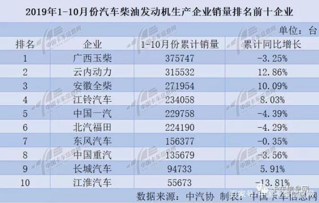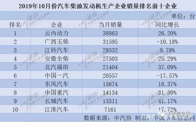柴油機:10月增幅減緩 云內(nèi)衛(wèi)冕冠軍 一汽降幅最大!