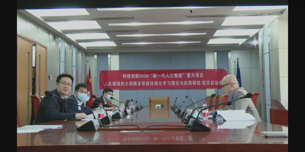 4月15日,由西安交通大學(xué)牽頭的科技創(chuàng)新2030—“新一代人工智能”重大項(xiàng)目“人機(jī)增強(qiáng)的大規(guī)模多智能體強(qiáng)化學(xué)習(xí)理論與應(yīng)用研究”項(xiàng)目啟動(dòng)暨實(shí)施方案論證會(huì)以線上線下結(jié)合的方式召開??萍疾扛呒夹g(shù)研究發(fā)展中心傅耀威處長,項(xiàng)目主管季與點(diǎn)、張晨陽、孟召賓,陜西省科技廳主任科員武偉,項(xiàng)目專家組西安交通大學(xué)鄭南寧院士,清華大學(xué)張濤教授,小米科技有限責(zé)任公司高級(jí)工程師許多,北京師范大學(xué)黃華教授,同濟(jì)大學(xué)陳啟軍教授,北京航空航天大學(xué)吳淮寧教授,湖南大學(xué)張輝教授參會(huì)指導(dǎo)。西安交通大學(xué)科研院副院長蘇光輝,副處長李小虎,項(xiàng)目參與單位北京大學(xué)、東南大學(xué)、浙江大學(xué)、中國電力科學(xué)研究院有限公司、武漢大學(xué)、中國科學(xué)院自動(dòng)化研究所、大唐移動(dòng)通信設(shè)備有限公司、國網(wǎng)天津市電力公司、靈動(dòng)科技(北京)有限公司相關(guān)負(fù)責(zé)人及項(xiàng)目骨干參加會(huì)議。
