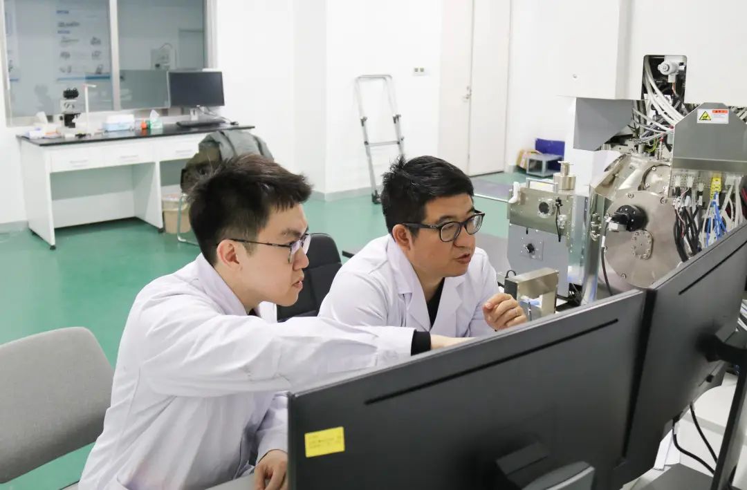 中科院物理研究所清潔能源實驗室的特聘研究員索鎏敏(右)與他的團(tuán)隊在懷柔科學(xué)城清潔能源材料測試診斷與研發(fā)平臺實驗室指導(dǎo)學(xué)生開展實驗