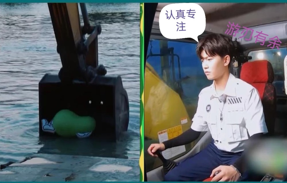節(jié)目中有這樣一個(gè)情景,在任嘉倫上場(chǎng)時(shí),水面飄來(lái)一個(gè)綠色瓶子,應(yīng)是節(jié)目組特意安排的。我們大家都知道挖掘機(jī)在地面作業(yè)時(shí),都需要操作員要有過(guò)硬的技術(shù),才能把一個(gè)靜止的物品挖起,放置到指定地點(diǎn)。但任嘉倫新手,把浮在水面并且晃動(dòng)瓶子,精準(zhǔn)的挖起,可謂是不簡(jiǎn)單,就旁邊楊迪在對(duì)講機(jī)里拍手叫好,評(píng)論區(qū)網(wǎng)友稱贊道任師傅你太厲害了太帥了。