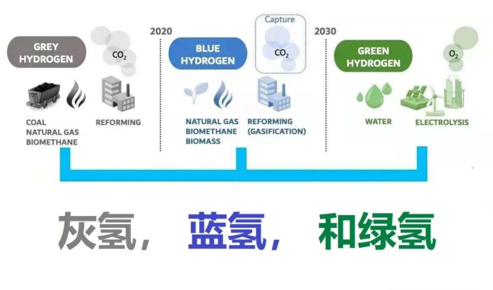 回到氫能的獲得方面,我們知道來源有三種,一種是化石燃料制備的灰氫(grey hydrogen),一種是綠氫(green hydrogen),也就是通過可再生能源制造的氫氣。還有一種是藍(lán)氫(blue hydrogen),主要來源是天然氣。