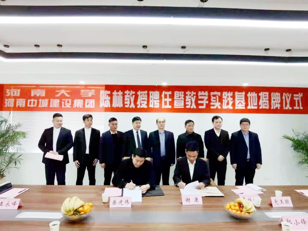 12月28日上午河南大學土木建筑學院與河南中城建設集團舉行合作簽約暨教學實踐基地揭牌儀式在河南中城公司舉行。