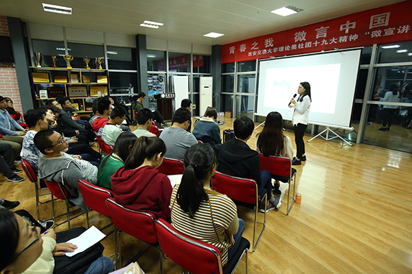 “選擇這個(gè)專業(yè),全國各地奔波的宣講,我沒有后悔,未來也不會(huì)覺得遺憾。”學(xué)生微宣講團(tuán)宣講人、馬克思主義理論專業(yè)博士生李婧說。從2017年作為第一批宣講人加入學(xué)生微宣講團(tuán)開始,李婧的足跡已經(jīng)遍布22個(gè)?。ㄊ小⒆灾螀^(qū))。在宣講的過程中,她不僅將黨的故事、西遷的故事講給別人,更深化了自己對愛國奮斗的理解。