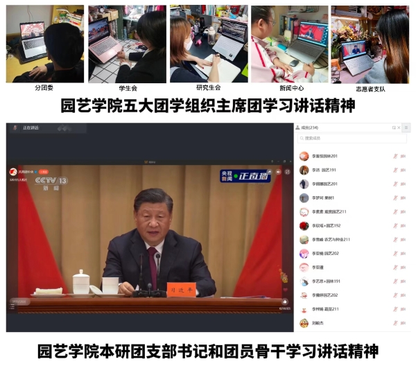 中國農(nóng)大新聞網(wǎng)訊5月10日上午十時(shí),園藝學(xué)院分團(tuán)委組織全院本研團(tuán)支部書記、五大團(tuán)學(xué)組織主席團(tuán)成員和團(tuán)員代表通過線上直播的形式收看慶祝中國共產(chǎn)主義青年團(tuán)成立100周年大會(huì),中共中央總書記、國家主席、中央軍委主席習(xí)近平出席大會(huì)并發(fā)表重要講話。