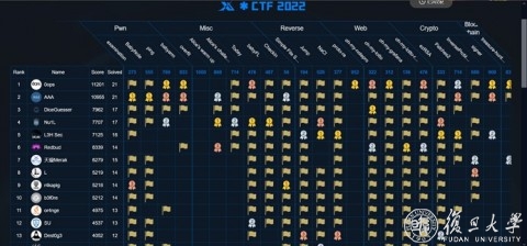 2022年4月17日09:00,由復(fù)旦大學(xué)******(六星)戰(zhàn)隊承辦的第七屆xctf國際網(wǎng)絡(luò)攻防聯(lián)賽分站賽*ctf順利落幕。經(jīng)過24小時激烈比拼, 0ops戰(zhàn)隊、aaa戰(zhàn)隊和聯(lián)合戰(zhàn)隊diceguesser分別獲得冠亞季軍。賽事總計放出23道賽題,其中有22道賽題被成功破解,排名第一、二的0ops和aaa戰(zhàn)隊累計解題21道,僅差2題實現(xiàn)全場ak。