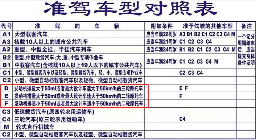 而兩輪電動輕便摩托車和電動三輪輕便摩托車,需要的f駕照,兩輪電動摩托車和摩托車需要的是e等級駕照,電動三輪摩托車需要的為d等級駕照;
