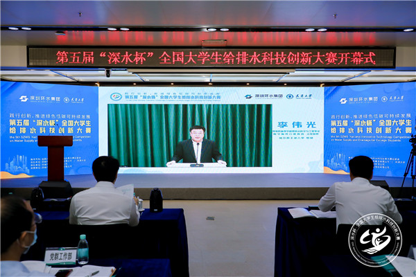 本站訊(通訊員 胡宏遠(yuǎn))5月13至14日,第五屆“深水杯”全國大學(xué)生給排水科技創(chuàng)新大賽順利舉行。此次大賽以“踐行創(chuàng)新,推進(jìn)綠色低碳可持續(xù)發(fā)展”為主題,由深圳市環(huán)境水務(wù)集團(tuán)有限公司和天津大學(xué)聯(lián)合承辦,深圳市水務(wù)科技有限公司協(xié)辦。教育部高等學(xué)校給排水科學(xué)與工程專業(yè)教學(xué)指導(dǎo)分委員會主任委員李偉光、副主任委員張國珍、鄧慧萍、張學(xué)洪、張智、委員黃顯懷,天津大學(xué)副校長鞏金龍、教務(wù)處處長王世斌、環(huán)境科學(xué)與工程學(xué)院黨委書記劉洪波、環(huán)境科學(xué)與工程學(xué)院院長邱順添、環(huán)境科學(xué)與工程學(xué)院黨委副書記張燦,深圳環(huán)境水務(wù)集團(tuán)董事長吳暉、總裁龔利民、黨委副書記何春華、副總裁冀濱弘、總工程師張金松、運營總監(jiān)杜紅等相關(guān)領(lǐng)導(dǎo)出席本次活動,近5000名高校師生、專家評委及給排水相關(guān)企業(yè)同仁在線同步觀看直播。