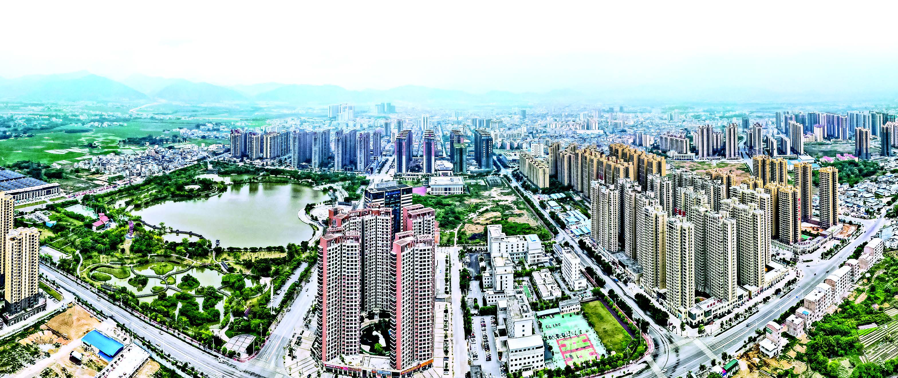 高樓林立、經(jīng)濟(jì)騰飛的賓陽縣城。