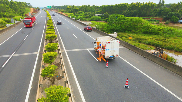 為提升改擴(kuò)建路段施工安全性,項(xiàng)目還將路錐自動(dòng)收放車和安全防撞緩沖車搭配使用,保障司乘人員行車及項(xiàng)目施工“雙安全”。