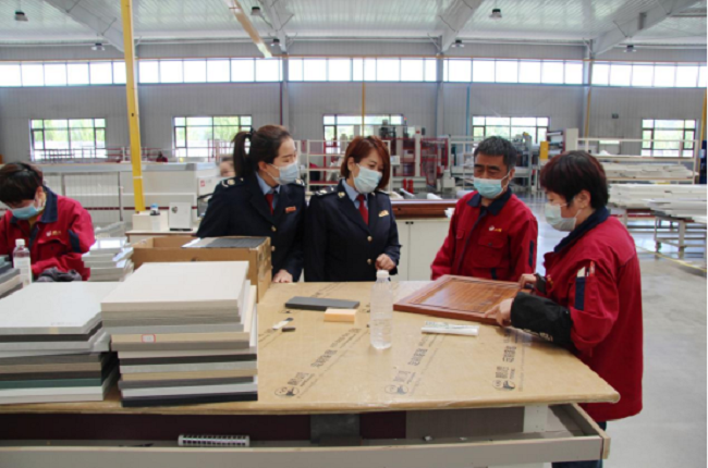 圖為:國家稅務(wù)總局扶余市稅務(wù)局深入吉林鵬鴻木業(yè)家居廠,了解企業(yè)生產(chǎn)實際,為企業(yè)送去增值稅留抵退稅政策。