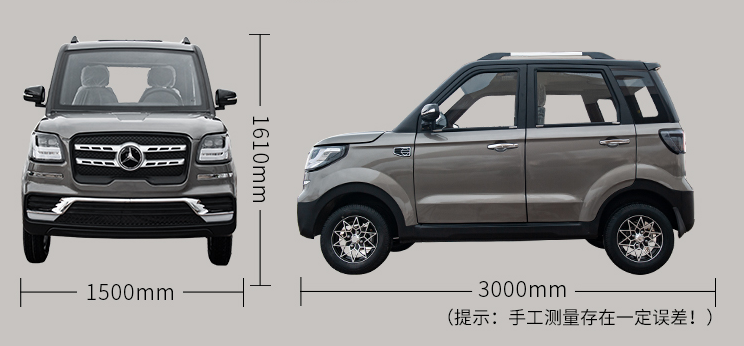 (1)外觀尺寸:雖然看上去很大氣,但這款車其實從尺寸來看,并不算特別大,整車尺寸為3000×1500×1610mm,為四門五座車型,全家出行代步都能用。