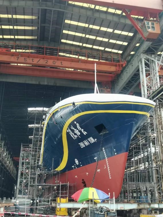 5月18日,全球首艘智能型無人系統(tǒng)母船“珠海云”在廣州下水。在下水前,山東科技大學測繪與空間信息學院博士生許方正和本科生干明義為其提供精密安裝測量技術(shù)支持。