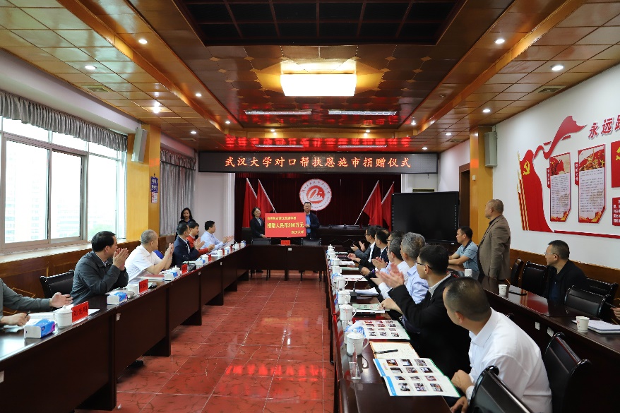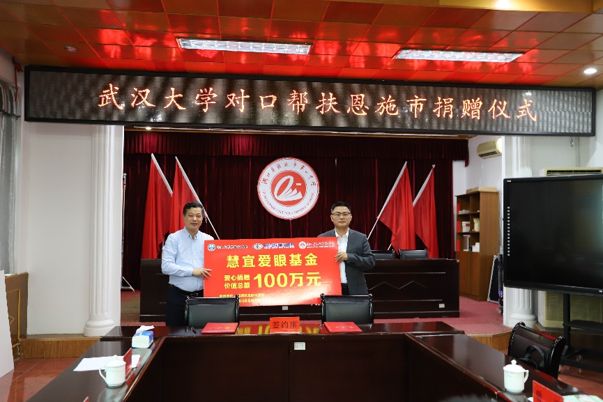 在座談會上,吳平代表武漢大學(xué)教育發(fā)展基金會向清江民族學(xué)校捐贈200萬元,徐東興、實驗與設(shè)備管理處處長畢衛(wèi)民代表學(xué)校向恩施市教育局捐贈了30臺服務(wù)站、60臺電腦、90臺(套)顯微鏡及相關(guān)實驗耗材,校友企業(yè)慧宜眼科醫(yī)院捐贈100萬元在恩施市第一中學(xué)設(shè)立慧宜愛眼基金。