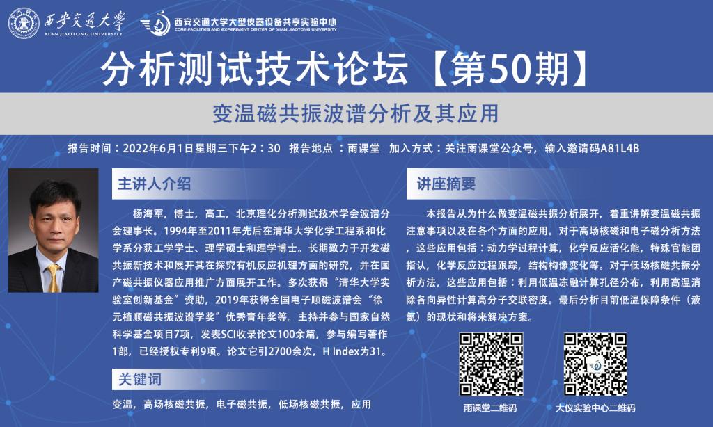 變溫核磁共振實(shí)驗(yàn)常用于研究分子內(nèi)和分子間的動(dòng)力學(xué)現(xiàn)象,比如交換現(xiàn)象、原子翻轉(zhuǎn)現(xiàn)象、互變異構(gòu)現(xiàn)象等,還可以在反應(yīng)過程中實(shí)時(shí)捕獲反應(yīng)中間體,了解反應(yīng)機(jī)理。楊海軍從為什么做變溫磁共振展開,深入淺出地講解了變溫磁共振測(cè)試過程的注意事項(xiàng)以及變溫核磁在化學(xué)反應(yīng)動(dòng)力學(xué)、反應(yīng)過程追蹤、交聯(lián)密度計(jì)算等方面的應(yīng)用。