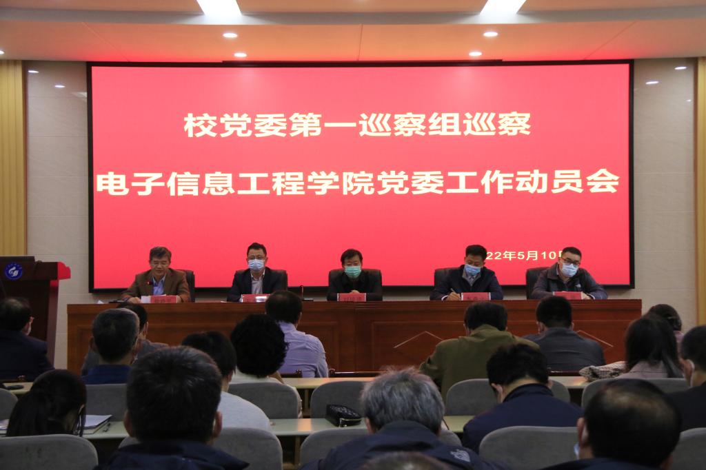 5月10日下午,根據(jù)校黨委巡察工作統(tǒng)一部署,校黨委第一巡察組、意識形態(tài)工作專項巡察組巡察電子信息工程學(xué)院黨委工作動員會召開。校第五輪巡察第一巡察組組長劉培進同志,副組長李垂文同志,成員卜文峰、李勇、楊倩、高靜,意識形態(tài)工作專項巡察組組長王永君、成員馮陽等同志出席會議,學(xué)院離退休老師代表、學(xué)生代表和學(xué)院全體教職工參加。