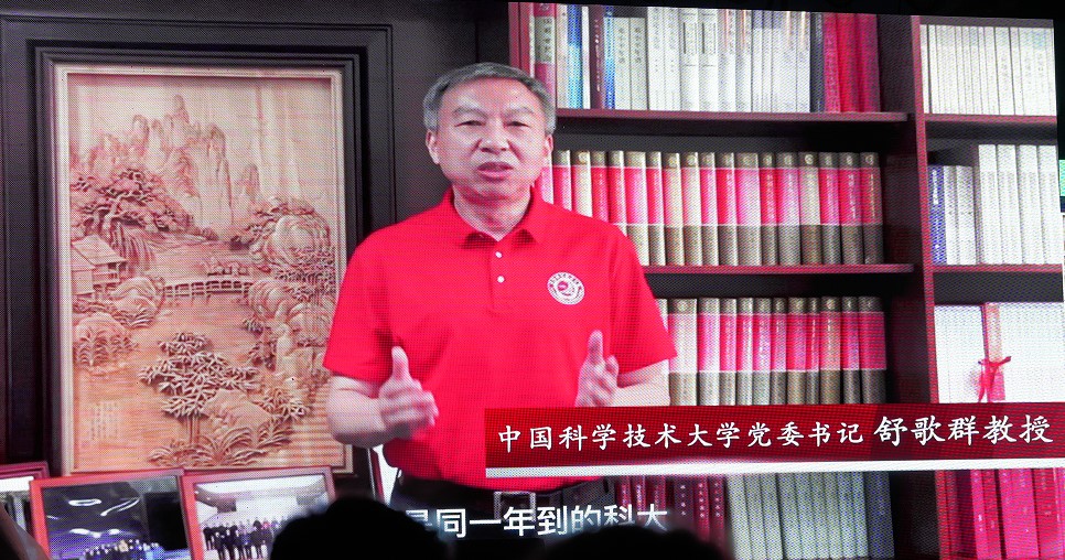 黨委書記舒歌群在第一篇章開始以視頻方式向圓滿完成學(xué)業(yè)、即將開啟人生新征程的同學(xué)們表示熱烈祝賀,希望同學(xué)們始終秉承錢學(xué)森先生工程科學(xué)的思想,牢記習(xí)近平總書記考察科大時(shí)的殷殷囑咐,“年輕人要心無旁騖,學(xué)成文武藝,報(bào)效祖國(guó)和人民,報(bào)效中華民族!”。他還傾情演唱了一首趙雷的《成都》,對(duì)部分歌詞進(jìn)行了一點(diǎn)改編,以此寄語(yǔ)畢業(yè)生“在紅專并進(jìn)的校園里,我從未忘記你,科大帶不走的只有你”“墨子悟空閃耀星空,永恒東風(fēng)伴我左右”,表達(dá)了對(duì)畢業(yè)生的殷切期待,并祝同學(xué)們前程似錦,牢記“科大永遠(yuǎn)伴你左右”。