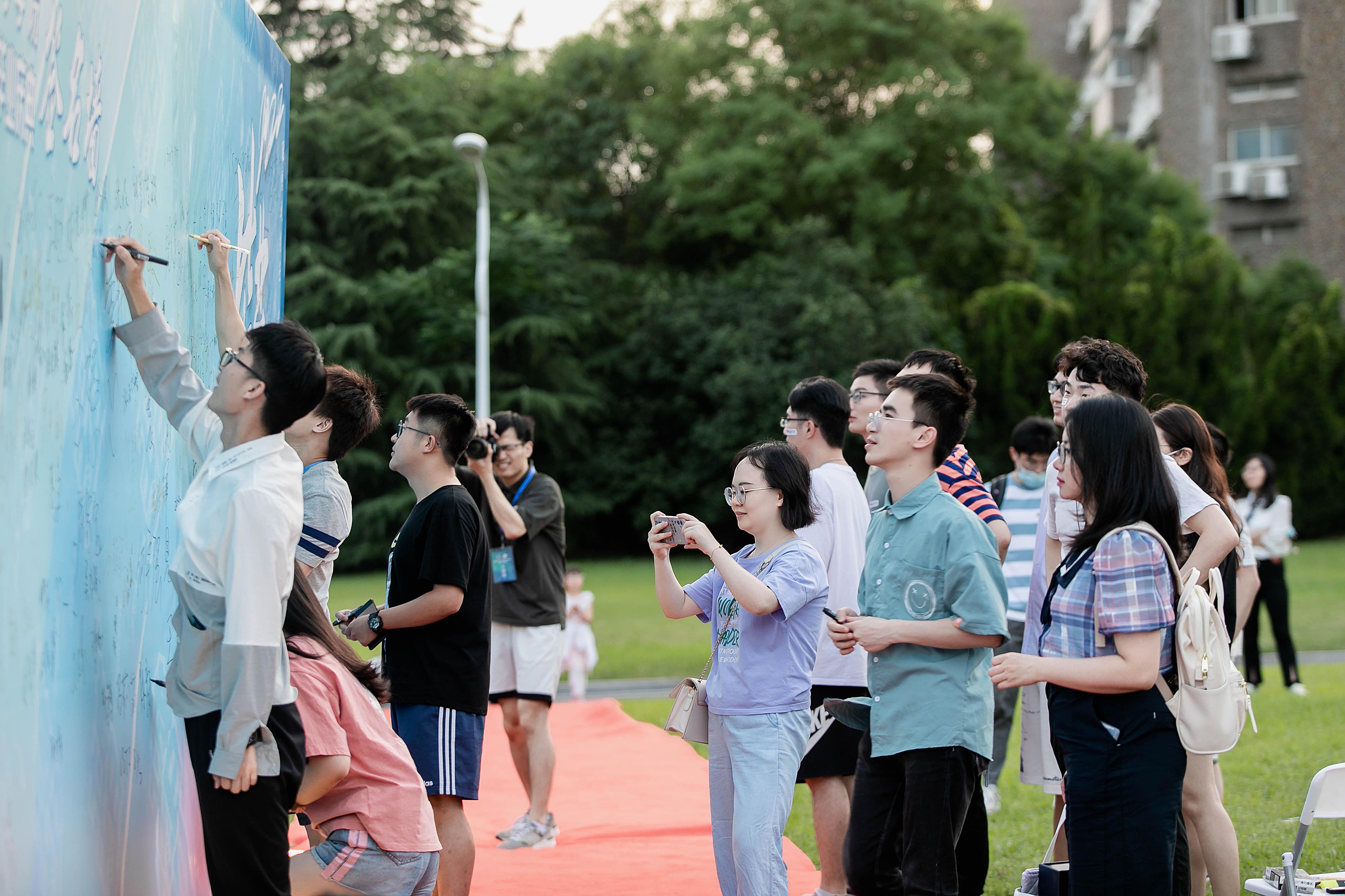 本次慶典暖場(chǎng)環(huán)節(jié)還設(shè)計(jì)了領(lǐng)取紀(jì)念品、紅毯時(shí)間和草地打卡,同學(xué)們熱情簽名、踴躍留言、溫馨合影,表達(dá)對(duì)母校的依依不舍和深深祝福。歲月的流逝揮不去執(zhí)著的夢(mèng),時(shí)光的飛馳帶不走永恒的心,躍入人海,各有風(fēng)雨?duì)N爛,愿畢業(yè)生同學(xué)胸懷鯤鵬之志,身行勤奮之徑,在人生更大的舞臺(tái)續(xù)寫精彩。
