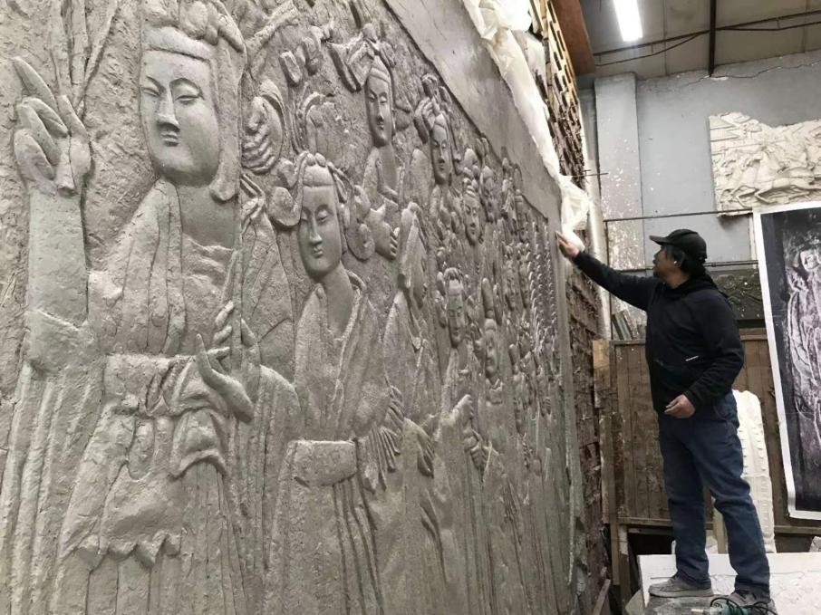 賈濯非在實驗室進行龍門石窟皇后禮佛圖的造型復原考證研究