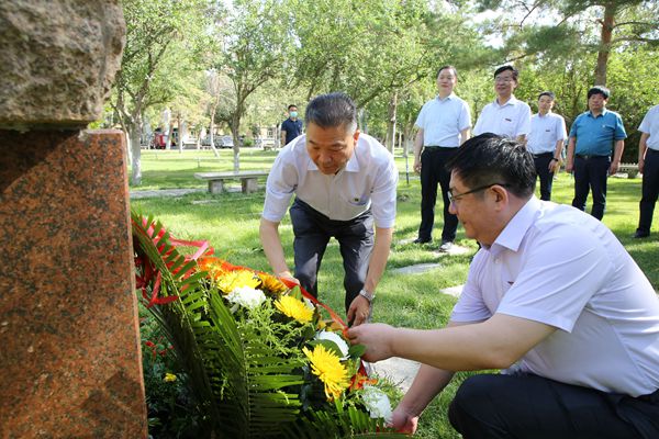 李興旺、謝樹青為王震將軍、涂治院士塑像敬獻花籃