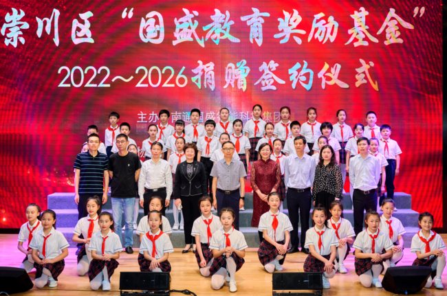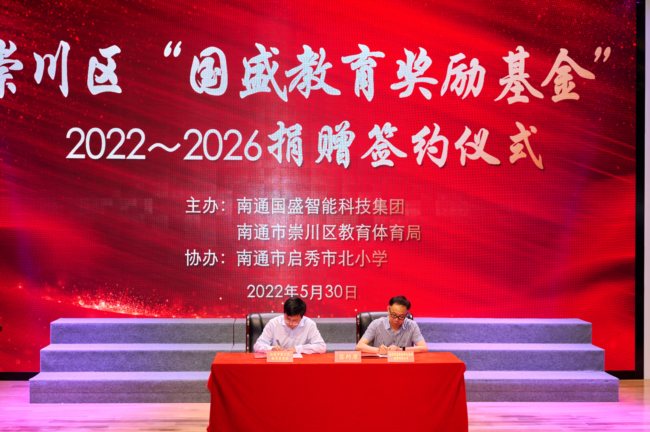 南通國盛集團作為科創(chuàng)板上市企業(yè)、國家高新技術(shù)企業(yè)、江蘇省優(yōu)秀民營企業(yè),秉承“產(chǎn)業(yè)報國、恩澤社會”的宗旨,關(guān)心支持崇川教育事業(yè)的發(fā)展。自2011年集團創(chuàng)辦“國盛教育獎勵基金”以來,他們堅守教育獎勵基金的創(chuàng)立初衷,已陸續(xù)向200多名教師進行表彰獎勵,累計獎勵資金近200萬元。本次簽約,更是約定今后5年,將每年捐資40萬,合計捐資200萬,專門用于全區(qū)教師隊伍建設(shè),獎勵為全區(qū)教育事業(yè)做出突出貢獻的教職員工,鼓勵教師們安心樂教、靜心從教。