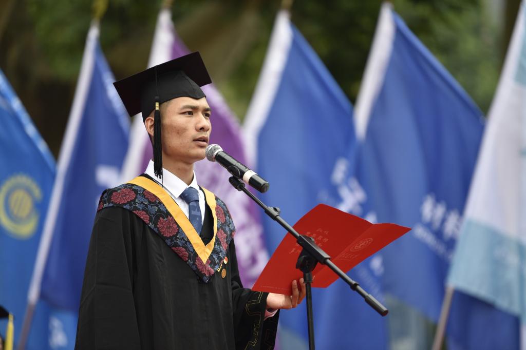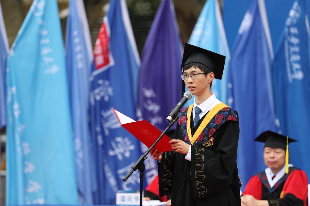 馮松杰回憶了四年來在母校的成長,深情感謝老師們的言傳身教與殷切鼓勵,他說正是與“大先生”們的一次次相遇,帶給了自己無限動力,堅定了奮斗報國的決心,找到了前進(jìn)的方向。“我會繼續(xù)不懈追求,創(chuàng)造美好未來?!瘪T松杰說。