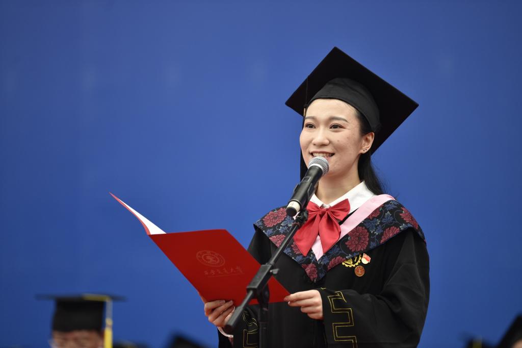全體醫(yī)學(xué)畢業(yè)生、全體畢業(yè)生莊嚴(yán)宣誓,表達(dá)了把青春奮斗融入黨和人民事業(yè)的堅定決心。隨后全體合唱校歌《為世界之光》,歌聲飄揚,青春遠(yuǎn)航。
