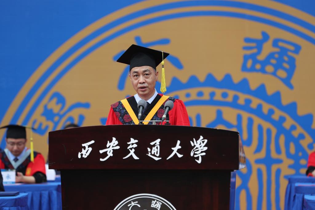 盧建軍寄語全體畢業(yè)生,要胸懷“國之大者”、弘揚西遷精神、勇?lián)鷩沂姑?、共?chuàng)交大榮譽!