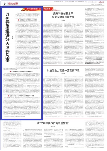 天津日報:學(xué)習(xí)貫徹市第十二次黨代會精神 以創(chuàng)新思維講好天津新故事