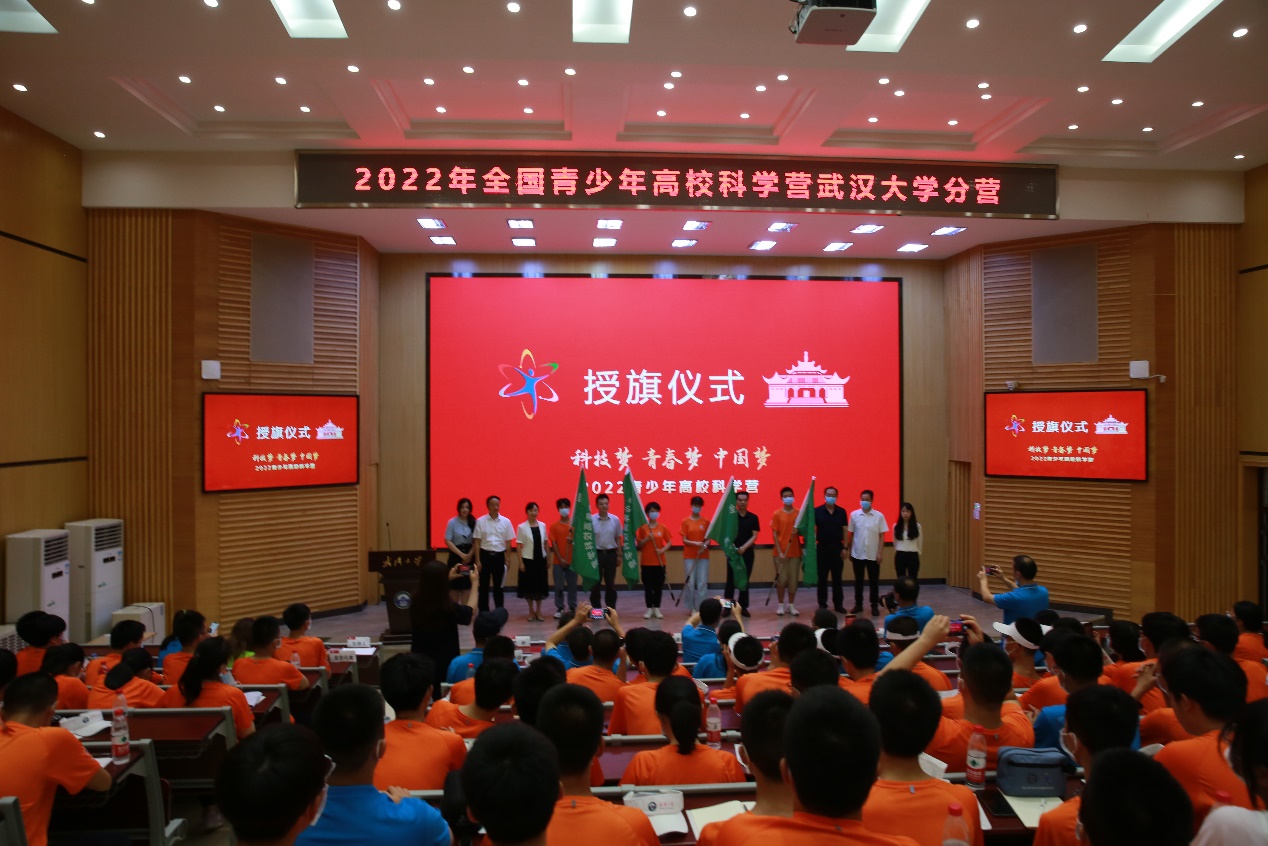 授旗儀式上,湖北省科學(xué)技術(shù)協(xié)會(huì)普及部、湖北省青少年科技中心、武漢大學(xué)團(tuán)委、武漢大學(xué)科學(xué)技術(shù)發(fā)展研究院等部門負(fù)責(zé)人向4位營(yíng)員代表(武穴中學(xué)學(xué)生許明妍、公安縣第一中學(xué)學(xué)生陸佳數(shù)、赤壁市第一中學(xué)學(xué)生周晨瑤、恩施市第一中學(xué)學(xué)生黃博軒)授旗。