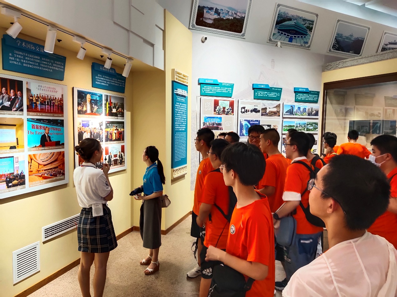 黨史學(xué)習(xí)環(huán)節(jié),營(yíng)員參觀了校史館和萬(wàn)林藝術(shù)館,學(xué)習(xí)了陳譚秋、李漢俊、李達(dá)等中共一大代表校友的事跡,以及學(xué)校的百年滄桑和世紀(jì)華章;在敦煌展中感受到古絲綢之路上中西方文化的交匯融合,理解了國(guó)家“一帶一路”倡議和人類命運(yùn)共同體理念的歷史淵源??茖W(xué)技術(shù)發(fā)展研究院院長(zhǎng)、遙感信息工程學(xué)院教授柯濤為營(yíng)員介紹了學(xué)??萍及l(fā)展最新進(jìn)展,以及張祖勛院士等老一輩科學(xué)家們矢志報(bào)國(guó)的情懷與事跡。