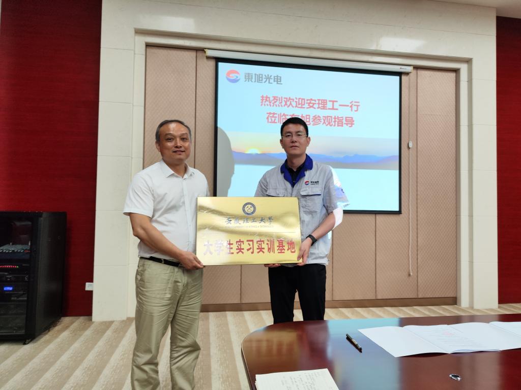 期間,圣宗強一行看望了四位在東旭光電科技公司實習的學生,與東旭光電簽訂了大學生實習實訓基地合作協(xié)議,并舉行了掛牌儀式;與映日科技在人才培養(yǎng)、實訓實習方面達成了初步合作意向。