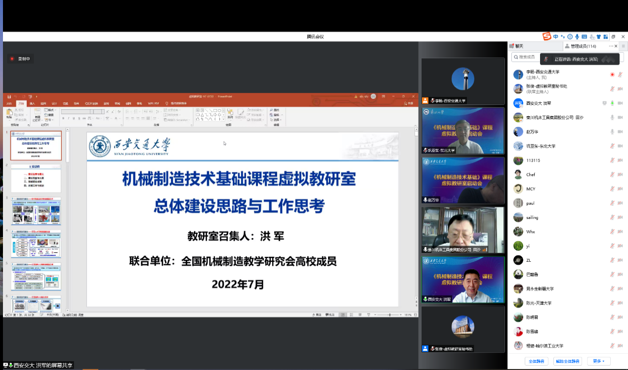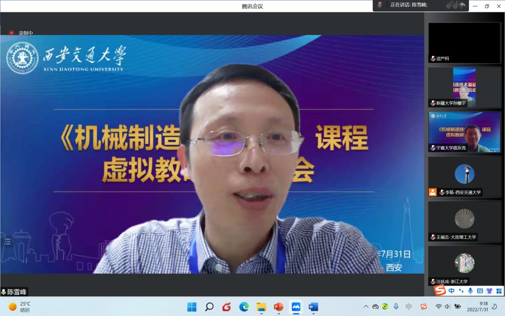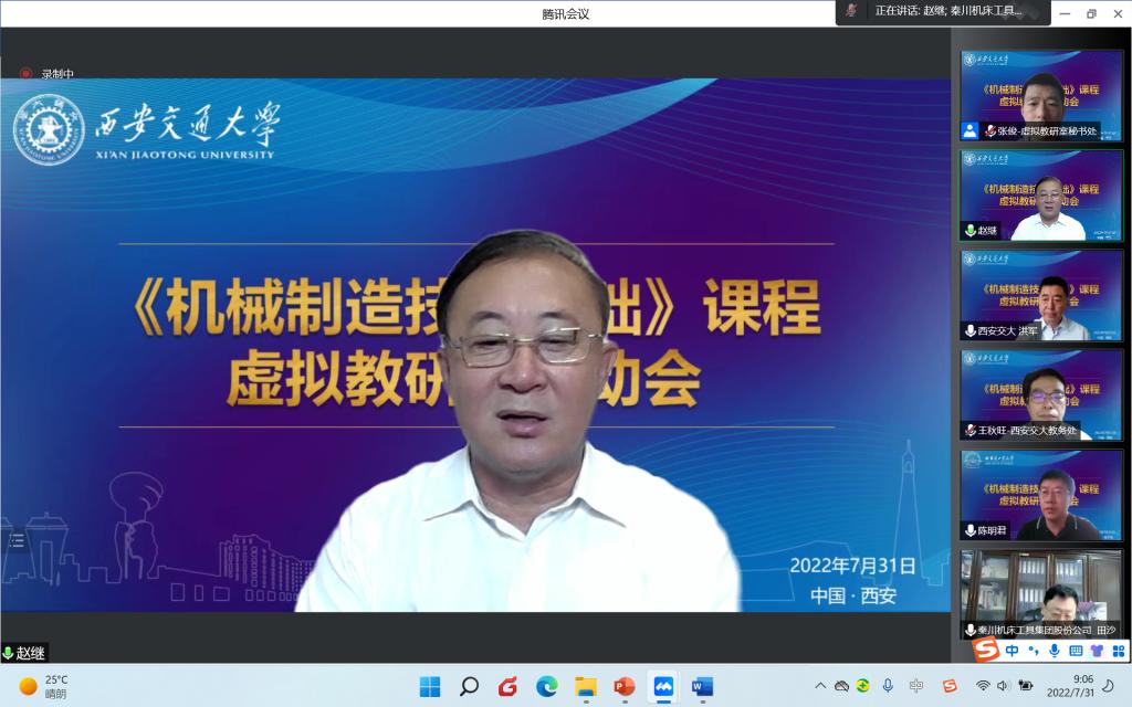 為貫徹落實《教育部高教司關(guān)于開展虛擬教研室試點建設工作的通知》(教高司函【2021】10號)和《教育部辦公廳關(guān)于公布第二批虛擬教研室建設試點名單的通知》(教高廳函[2022]13號)文件精神,7月31日,西安交通大學牽頭的教育部機械制造技術(shù)基礎課程虛擬教研室召開了啟動會,會議以騰訊會議線上形式舉行。會議圍繞機械工程教育、機械制造工藝人才能力需求與培養(yǎng)、機械制造技術(shù)基礎課程虛擬教研室建設思路與工作思考等開展了工作研討。西安交通大學常務副校長鄭慶華教授、教務處處長王秋旺教授、機械工程學院院長陳雪峰教授出席啟動會。虛擬教研室負責人、西安交通大學洪軍教授主持啟動會。來自全國40余所高校的100多位課程骨干教師和機械類專業(yè)教學指導委員會、機械工業(yè)出版社、相關(guān)企業(yè)的負責人參加會議,