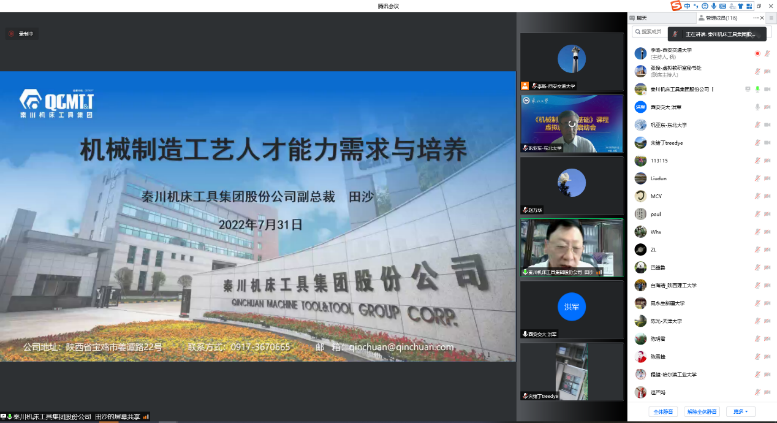 機械類專業(yè)教學指導委員會秘書長,東北大學鞏亞東教授以“機械工程教育的認識與思考”為主題作特邀報告。報告分別從機械工程教育影響的認識、機械工程教育改革的思考、機械工程教育創(chuàng)新的實踐以及機械工程類專業(yè)建設進展四個方面進行了闡述,為虛擬教研室的今后建設提供參考。秦川機床工具集團股份公司副總經(jīng)理田沙作“機械制造工藝人才能力需求與培養(yǎng)”的特邀報告,以秦川機床工具集團股份公司實際制造案例為例,提出了企業(yè)對工程類人才能力的需求,為機械工作專業(yè)課程培養(yǎng)方案、教材內(nèi)容、學習方法等提出了寶貴的建議。