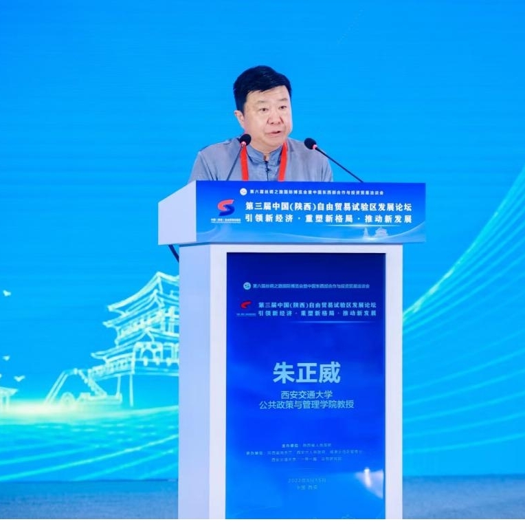 朱正威以《推動(dòng)“三區(qū)”融合發(fā)展,打造內(nèi)陸開放新高地》為題發(fā)表主旨演講,他以自貿(mào)試驗(yàn)區(qū)與海關(guān)特殊監(jiān)管區(qū)域統(tǒng)籌發(fā)展措施為切入點(diǎn),通過回溯與總結(jié)國際國內(nèi)已有區(qū)域探索經(jīng)驗(yàn),探討了“國內(nèi)大循環(huán)”“國內(nèi)國際雙循環(huán)”背景下我國自貿(mào)試驗(yàn)區(qū)統(tǒng)籌發(fā)展的趨勢方向、可行性路徑,并依據(jù)陜西“多區(qū)疊加、三區(qū)融合”的發(fā)展思路與要求提出了相關(guān)政策建議。