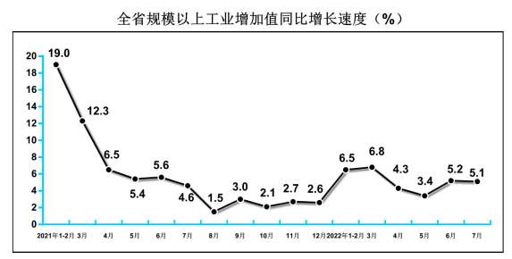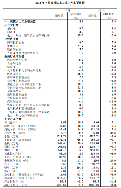 2022年7月規(guī)模以上工業(yè)增加值增長5.1%