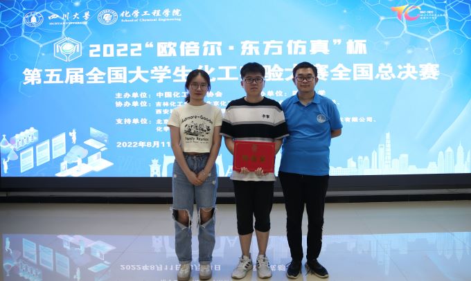 本站訊(化工學院供稿)2022年8月14日,“歐倍爾·東方仿真”杯第五屆全國大學生化工實驗大賽全國總決賽在四川大學落下帷幕,由天津大學化工學院2019級本科生汪涵、龔萱、李林發(fā)三位同學組成的“求是拓新”隊,榮獲全國總決賽特等獎第一名。這也是該項賽事舉辦以來,天大化工學子五獲特等獎,四奪第一名,天津大學也成為了唯一在歷屆大賽中都斬獲特等獎的高校。