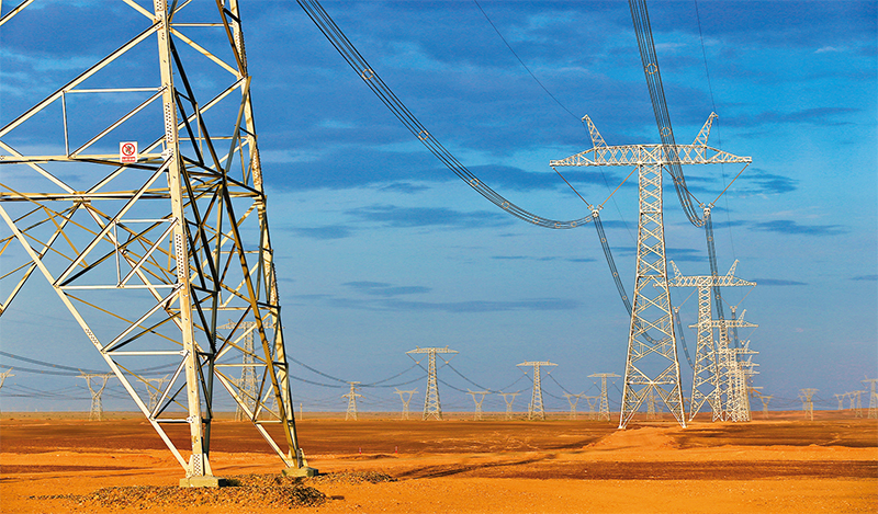 準(zhǔn)東—皖南±1100千伏特高壓直流輸電工程是我國自主研發(fā)的世界電壓等級(jí)最高、輸電容量最大、輸電距離最遠(yuǎn)的特高壓工程。工程每年可減少華東地區(qū)燃煤消耗約3800萬噸,成為連接西部邊疆與華東地區(qū)的“電力絲綢之路”。圖為該工程的新疆哈密段輸電線路。 國家電網(wǎng)有限公司黨組宣傳部供圖
