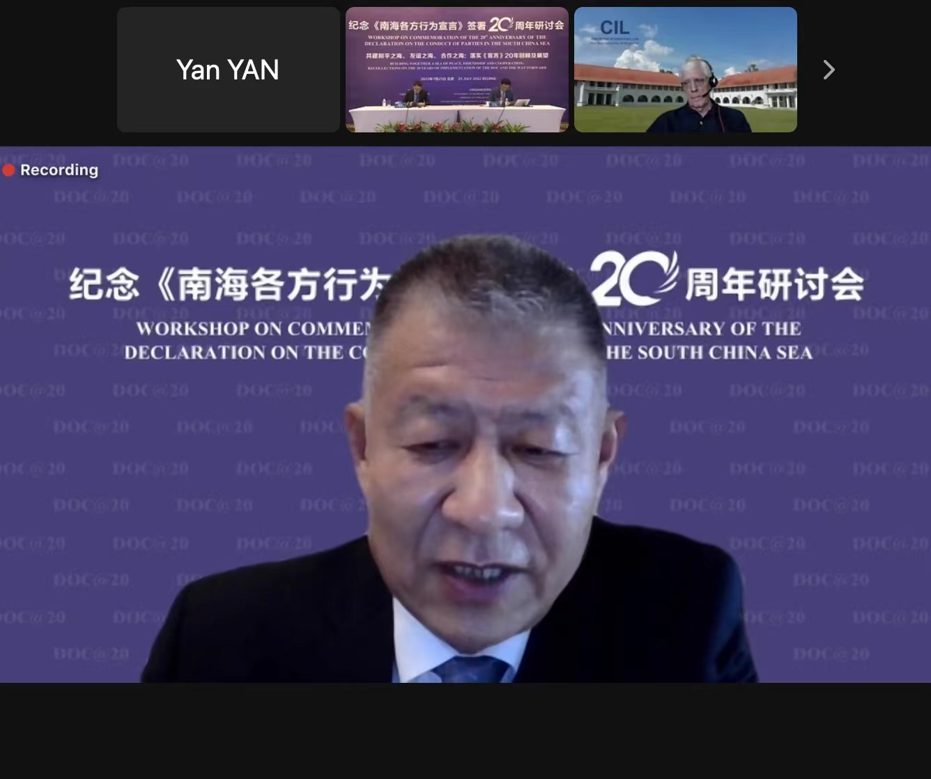 新聞網(wǎng)訊(通訊員孔令杰、雷筱璐、田昀禾)7月25日,紀念《南海各方行為宣言》簽署20周年研討會以線上線下相結(jié)合的方式在北京隆重舉行。研討會由我國外交部主辦,由外交部邊界與海洋事務(wù)司、武漢大學中國邊界與海洋研究院、中國南海研究院聯(lián)合承辦。中國和東盟十國外交部、東盟各國駐華使館代表,以及中國和東盟國家有關(guān)智庫和研究機構(gòu)專家代表共75人參加研討會。