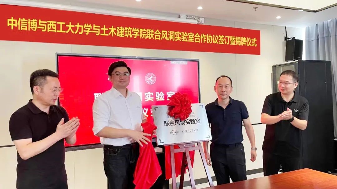 8月6日,西北工業(yè)大學(xué)力學(xué)與土木建筑學(xué)院與江蘇中信博新能源科技股份有限公司(簡稱“中信博”,英文名:arctech)聯(lián)合風(fēng)洞實驗室合作協(xié)議簽訂暨揭牌儀式在中信博總部圓滿舉行。力學(xué)與土木建筑學(xué)院院長李棟教授,中信博董事長、總裁蔡浩,中信博董事、副總裁周石俊、中信博董事、研發(fā)中心負責(zé)人楊穎,西北工業(yè)大學(xué)副教授陳昌宏等共同出席儀式。