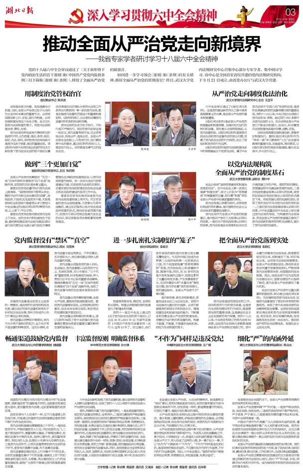 2016年10月30日湖北日報正版刊發(fā)中心專家學習十八屆六中全會精神座談會發(fā)言摘編