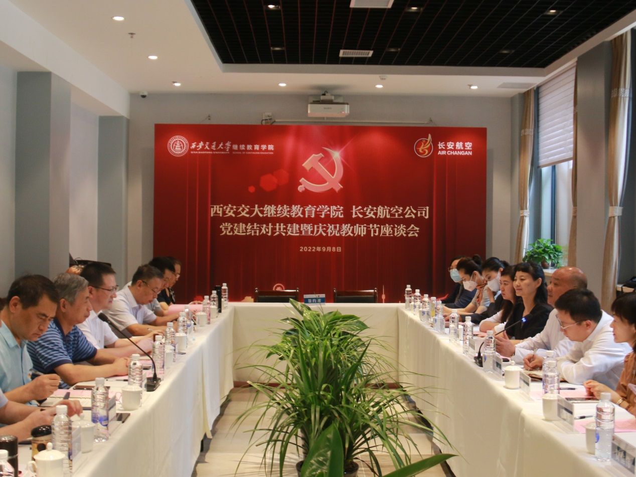 在黨的二十大即將召開之際,9月8日,為慶祝第38個教師節(jié),西安交大繼續(xù)教育學院與長安航空有限責任公司黨建結(jié)對共建暨慶祝教師節(jié)座談會在學院翠華校區(qū)舉行,雙方簽署相關(guān)合作協(xié)議并進行教學授課交流,推進黨建與業(yè)務(wù)深度融合,深化校企合作、產(chǎn)教科教融合。