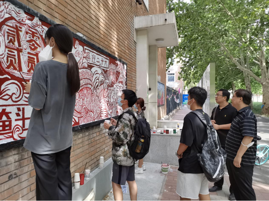 建筑學(xué)院師生繪制“喜迎二十大”主題墻繪
