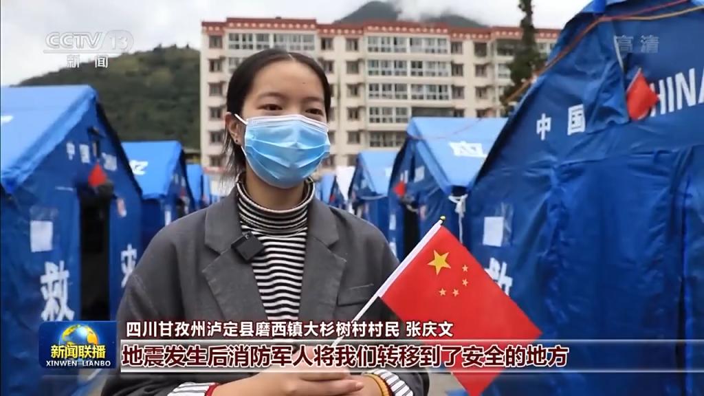 四川甘孜州瀘定縣磨西鎮(zhèn)大杉樹村村民 張慶文:我們一起歌唱祖國。地震發(fā)生后消防軍人將我們轉(zhuǎn)移到了安全的地方,當我們看到安置點內(nèi)有帳篷,有吃的的時候,心里就很安心,黨和國家沒有放棄我們?nèi)魏我粋€人,給了我們滿滿的安全感。