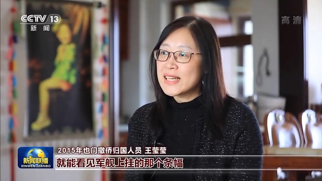 2015年也門撤僑歸國人員 王瑩瑩:當船緩緩靠近的時候,就能看見軍艦上掛的那個條幅,祖國派軍艦接親人們回家。當那個條幅緩緩靠近,我的心里是,眼眶是濕了。而且孩子也一直在喊,說媽媽你看到大船了嗎?那是大船嗎?還是覺得我們終于能回家了,就是有一種幸福感,這個幸福感從什么來,就是背后的強大的祖國,使我們覺得我們很安全。