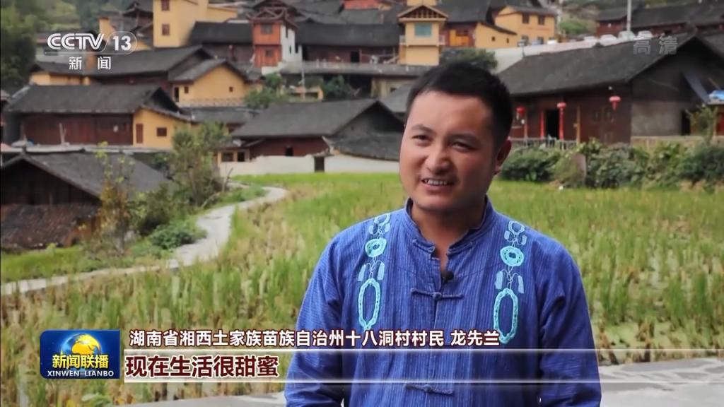 湖南省湘西土家族苗族自治州十八洞村村民 龍先蘭:我自己是靠養(yǎng)蜜蜂、賣蜂蜜,脫貧又脫單,現(xiàn)在生活很甜蜜。沒有黨和國家就沒有我們的現(xiàn)在,今天帶著女兒把小國旗插起來,祝福我們的祖國繁榮昌盛。