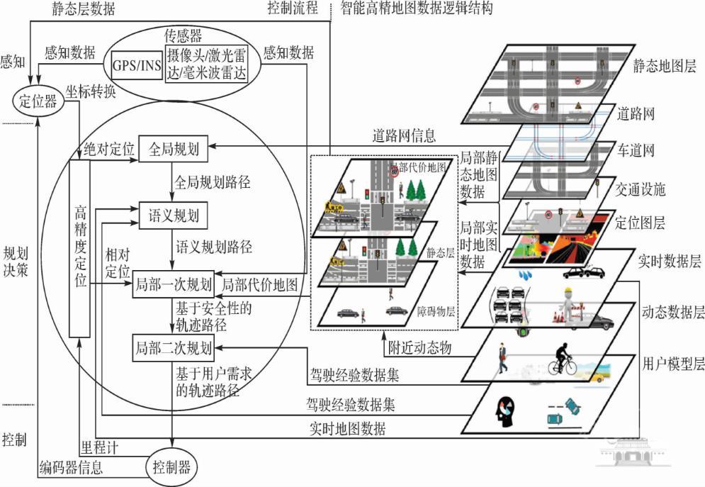 《智能高精地圖數(shù)據(jù)邏輯結(jié)構(gòu)與關(guān)鍵技術(shù)》由劉經(jīng)南院士、郭遲教授等完成,于2019年8月發(fā)表在《測繪學(xué)報》期刊上。該文章以車輛自動駕駛、無人駕駛為研究對象,討論定義了智能高精地圖,認(rèn)為智能高精地圖作為未來出行的關(guān)鍵一環(huán),是交通資源全時空實時感知的載體和交通工具全過程運行管控的依據(jù)。為了推動智能高精地圖研究與應(yīng)用進(jìn)展,對其關(guān)鍵特征與問題展開分析討論,該文從地圖學(xué)理論上提出智能高精地圖信息傳輸模型;從實際應(yīng)用上結(jié)合輪式機(jī)器人自主智能控制流程,提出智能高精地圖數(shù)據(jù)邏輯結(jié)構(gòu),并分析其在自動駕駛中的應(yīng)用;從計算模式上總結(jié)“眾包+邊云協(xié)同計算”計算模式,并針對如何提高眾包數(shù)據(jù)質(zhì)量的問題,開展關(guān)鍵技術(shù)分析;從應(yīng)用場景上分析未來智能高精地圖的有效應(yīng)用場景。通過這些關(guān)鍵技術(shù)可實現(xiàn)城市交通資源的最優(yōu)化配置,充分發(fā)揮不同交通資源之間的聯(lián)動效果,從源頭上解決城市之間交通資源的供需矛盾,實現(xiàn)高效高質(zhì)量出行,實現(xiàn)“出行即服務(wù)”愿景。該成果得到了國家重點研發(fā)計劃、國家測繪地理信息標(biāo)準(zhǔn)制定項目、中國工程院重大咨詢研究項目等項目資助。