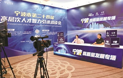 昨天,央視頻直播的“不負(fù)韶華 國聘行動”寧波高質(zhì)量發(fā)展專場活動開播。(唐嚴(yán) 王鵬 攝)
